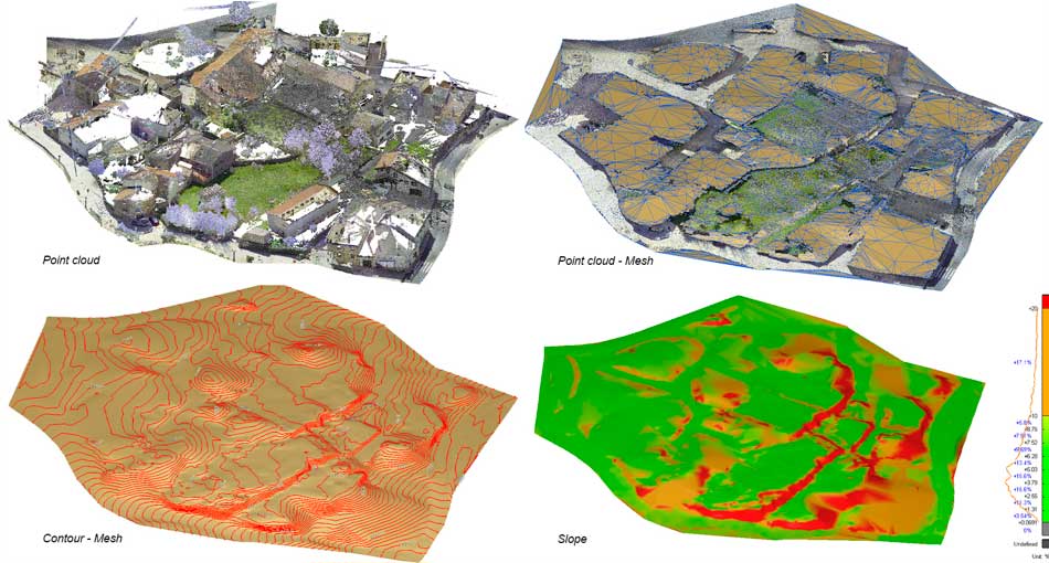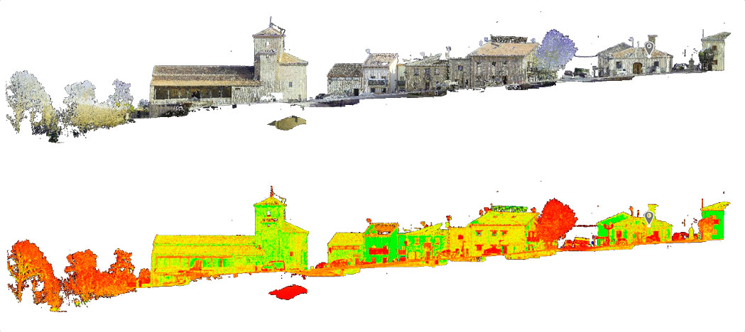 Toma de datos masiva del pueblo mediante el levantamiento con escaneo de nube de puntos junto a un posterior trabajo de gabinete de modelado BIM del estado actual por fases de las edificaciones, infraestructuras e instalaciones del pueblo para su posterior uso para proyectos de mejora, actualización y mantenimiento.